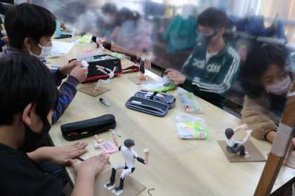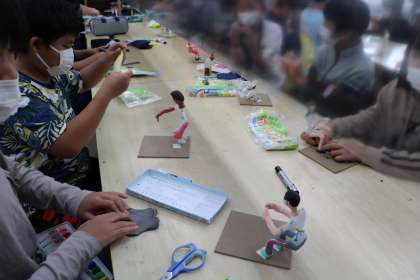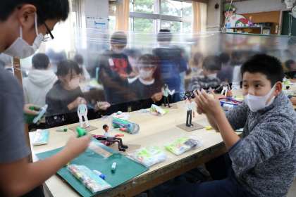6年生図工「12年後の私」の作品作りの様子です。
