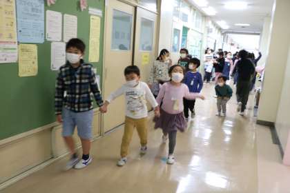 4年生が1年生を迎えに行くところからスタートです。1年生は自分の班の4年生を見つけると嬉しそうに手を振っています。