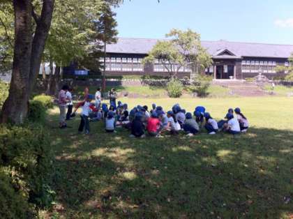これから、昔は小学校だった資料館で川場村について学習します。良い天気で気持ちが爽やかになります。
