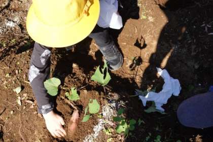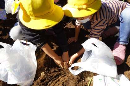 弦をとり掘りやすくしてくださっていましたが、初めはおっかなびっくりで土を触る子ども達です。