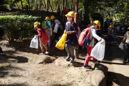 いも掘りのあとは秋探しです。ドングリや紅葉したきれいなな葉っぱをたくさん手に取り秋を満喫する1年生です。
