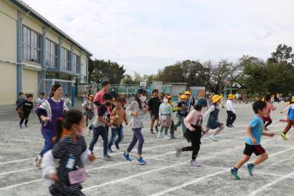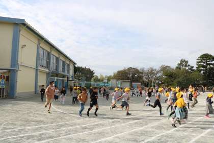 全校朝会前の、朝のランランラン1・2・3年生の様子です。