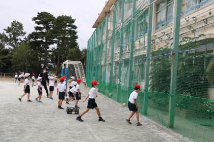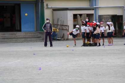 2年生体育「投げる運動」の様子です。