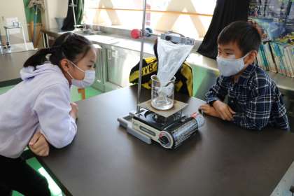「実験の予想は?」・・などと子供たちに質問すると、きちんと答えが返ってきます。