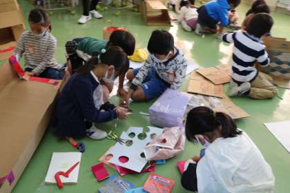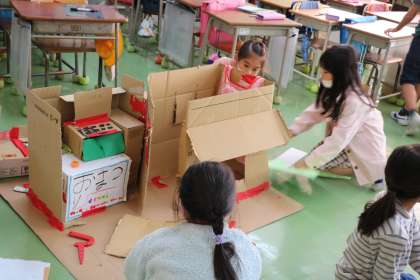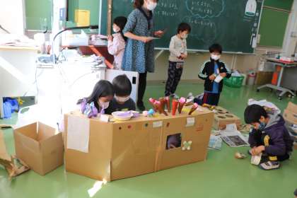 2年生 生活科「遊んで、ためして、くふうして」の学習の様子です。モグラたたきや。迷路などゲーム屋さんを試しながらうまくいくように改良しています。こんなに楽しそうな活動なのですが、大騒ぎにならず、やるべきことにそれぞれ一生懸命、でもしっとりとした雰囲気で取り組んでいます。