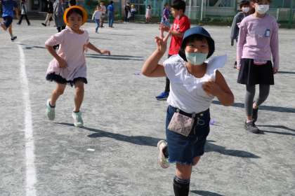 5年生が手伝う姿も見られます。6年生がラインを引いたり準備をしたり、いよいよ遊びが始まります。