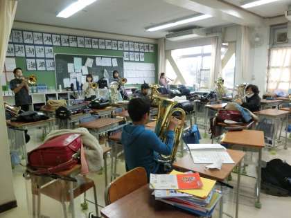 金曜日の鼓笛発表に向けて、朝練習にも熱が入る6年生の様子です。