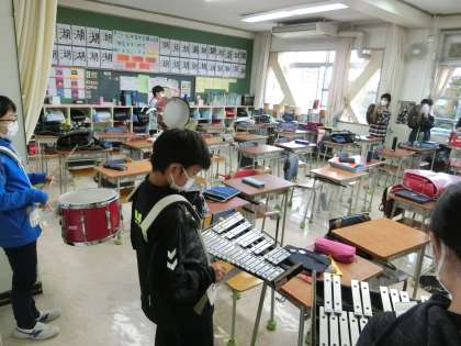 金曜日の天気は晴れの予報、校庭での演奏が楽しみです。1・2年生は5校時で下校なので後日動画で、6年生保護者の方と3・4・5年生は校庭で発表を見ます。