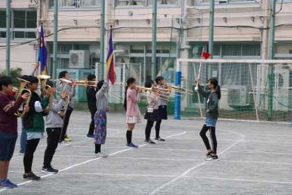 6年生の鼓笛練習です。発表まであと2日となりました。練習にも力が入っています。演奏しながらの隊形移動もスムーズになってきました。