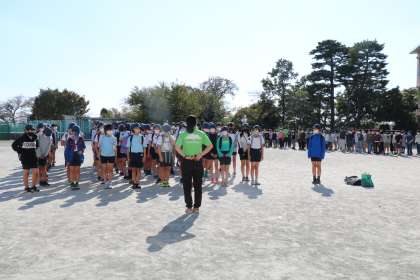 砧小学校の顔として、連合運動会に出発する6年生壮行会は砧小学校の伝統です。