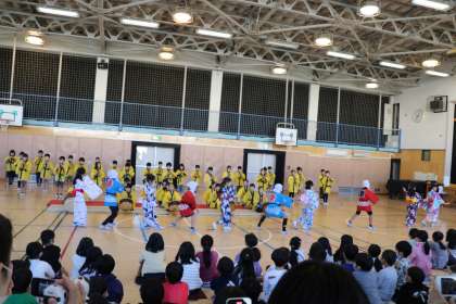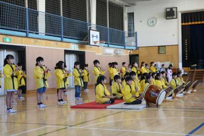 発表は全校児童が教室で動画配信し、聞いています。会場には、次に担う2年生と3年生の保護者の方に来ていただきました。