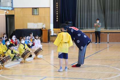聞いてくれた2年生から感想をもらい、保存会の方々にお礼の手紙をお渡しし、石井戸囃の発表は終わりです。今年は喜多見区民祭りが中止になり、喜多見小学校での発表ではありませんでしたが、今日を目標に頑張りました。そして何より、自分たちの学校のあるこの砧の地の伝統を受け継ぐことに一生懸命取り組んだことは立派でした。心を一つに頑張った誇らしい3年生です。