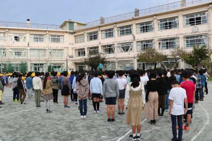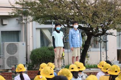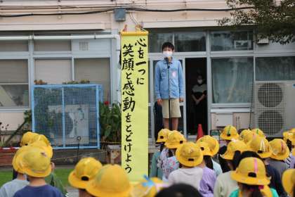 続いて代表委員会より、学芸会のスローガン発表がありました。各学級で話し合ったスローガンの言葉や思いを持ち寄り、代表委員会がまとめました。