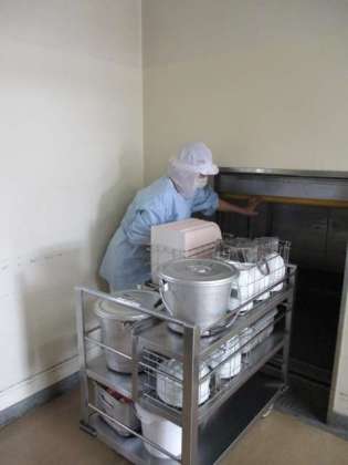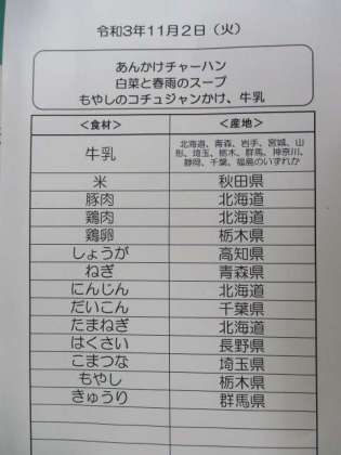 コチュジャンは朝鮮語で「コチュ」は「とうがらし」、「ジャン」はみそという意味です。もち米と大豆みそ、とうがらしを合わせて発酵させた調味料です。今日の野菜はコチュジャンを使ったドレッシングで和えました。少しピリッと辛いですが、こどもたちはよく食べていました。最後の写真はリフトを使って2階、3階へクラス配膳車を運んでいる様子です。