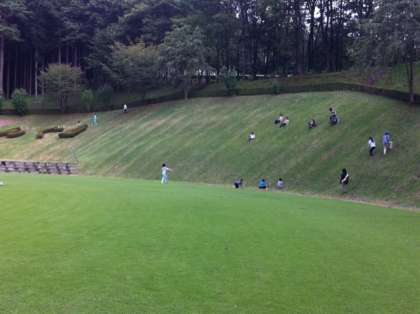 山登りの後なのに、広々とした芝生の公園で、たくさん遊びました。