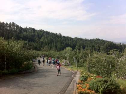 のどかなりんご畑の中をゆっくり歩いていきます。