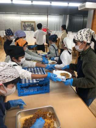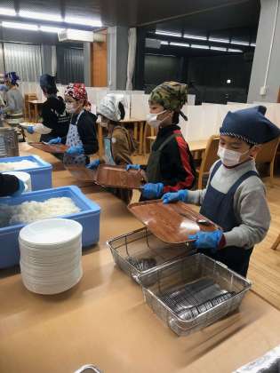 夕食の準備の様子です。手際良く配膳できる食事係りさんはさすがです。