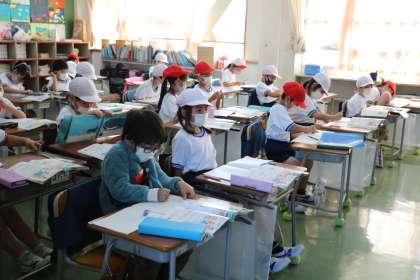 1年生算数の様子です。文章問題にじっくり取り組んでいます。