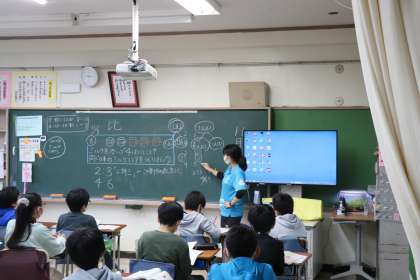 6年生の算数の授業です。今日は、比の表し方を考える授業でした。自分で考えを積極的に発表する子が多かったです。友達の考えをしっかりと聞いて考えることができていました。