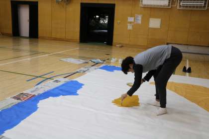 写真は昨晩20時の体育館の様子です。BOPも終わり、静まり返った校舎、体育館にはまだ先生たちがたくさん残って、学芸会の背景や大道具を作っています。子供たちの力がより発揮できるように、先生たちも頑張ります。