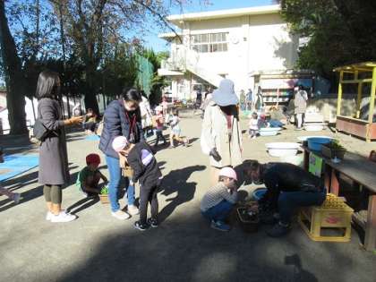 はな組さんは、親子苗植えの日でした。地域の方に教えていただきながら、パンジーとビオラの苗を植えました。水やりをしたり肥料をやったりお世話をすると、どんどん花が増えて長く楽しめるそうです。楽しみですね。