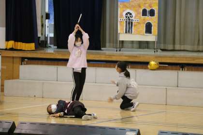 3年生の学芸会練習の様子です。台詞と動きが合ってくるようになってきました。友達の演技を真剣に見てあげている姿勢もすばらしいです。