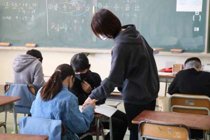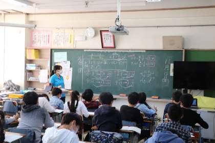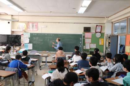6年生の算数の授業です。比の学習をしています。どの教室も落ち着いて授業に取り組んでいます。難しい単元ですが、子供たちからいろいろな考えが出ていました。