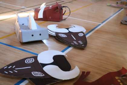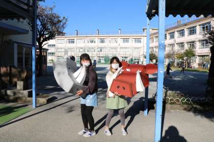 6年生が道具を運び入れ1時間目の練習準備をしています。