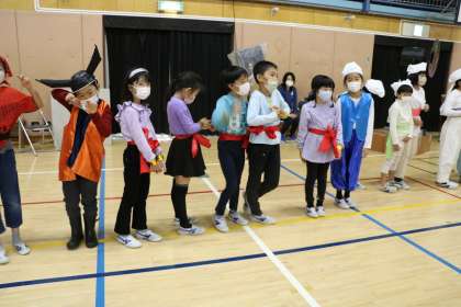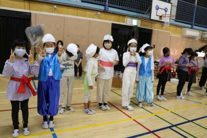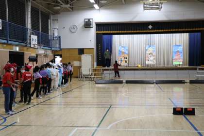 3年生も衣装を着けて最後の練習です。入退場の確認まで、準備万端です。