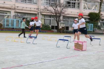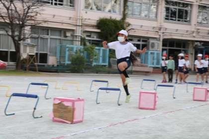 3年生体育ハードル層の学習です。一人ひとりタイムを計りました。リズムよくハードルをまたぎ越している子に先生や友達から絶賛の声が飛びます。ますます頑張ろうと思いますね。