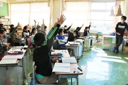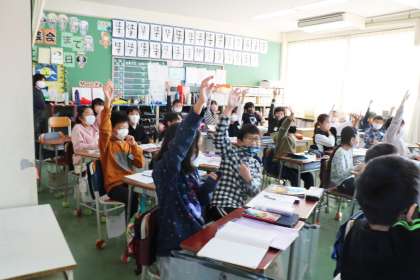 4年生。こちらも集中して・・・取り組んでいたのですが。ごめんなさい。私の姿を見ると手を振ったり、写真撮って!のサインが来ます。担任の先生が「みんなが一生懸命勉強している様子を見に来てくださったんだから、がんばって勉強しないと!」と言ったら・・・本当にみんな意欲的です。