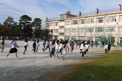 今日は、学芸会のリハーサルの日です。みんな元気に登校してきました。いつも通り朝のランランランもありました。朝から体をしっかり動かして、心も体もすっきりとさせて1日のスタートがきれました。