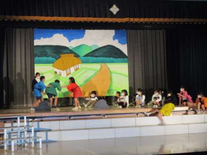 5年生の「ユタと不思議な仲間たち」の発表です。高学年らしく豊かな心情表現で演技できていました。劇中歌もとても素敵でした。