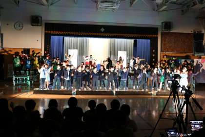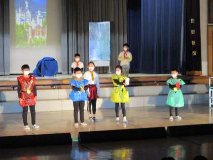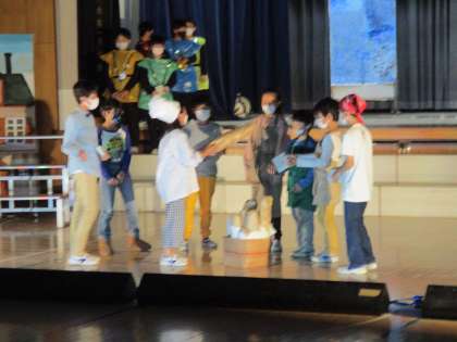 4年生の「クラリーナ国の陰謀」の発表です。人を信じることの大切さを芝居と歌、そしてダンスで表現できました。最後の全員での歌とダンスは圧巻でした。