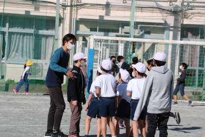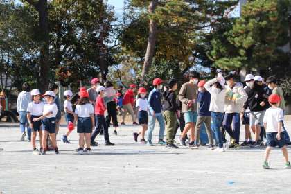 昼休みに運動委員会企画「スーパードッジボール」が始まります。