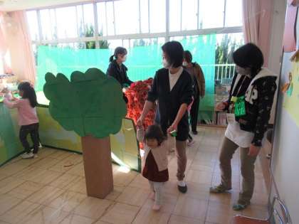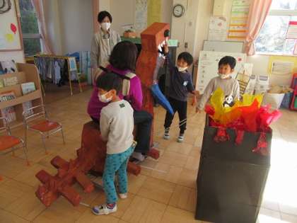 時々2階に見に行き、ずっと楽しみにしていた年少組さん。明日はいよいよ年少組さんが遊べる日です。年長組さん、明日も頑張ってね。
