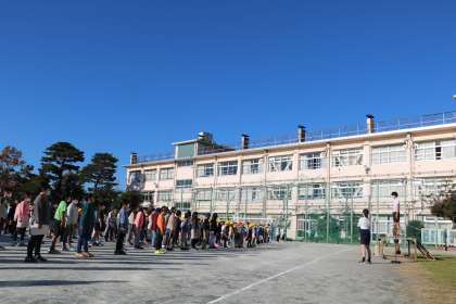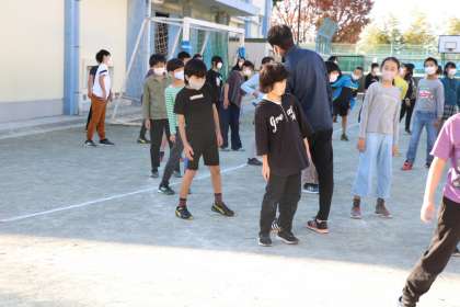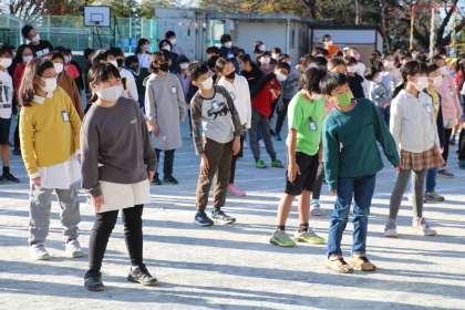 最後に「くの字・Sの字運動」です。音をよく聞きリズムに合わせて体を動かします。