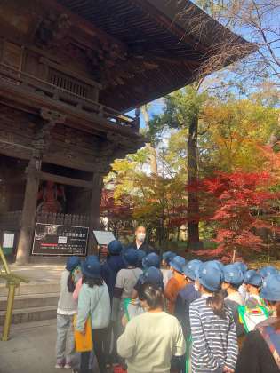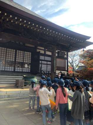 今日は大きなご葬儀が入ってしまい本堂に入れませんでしたが。お坊さんからいろいろな話を伺うことができました。熱心に質問をしたり、相槌を打ったり、メモを取ったりする砧小学校の子どもたちです。紅葉を楽しんでいらっしゃった一般の方から