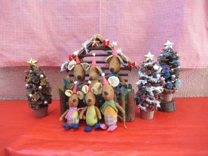 花の会の皆さんから、大きなマツボックリをおすそ分けいただきました。こんなに大きなマツボックリがあるのですね。ダイオウショウ(大王松)という松のマツボックリと思われます。たぬきクラブ(預かり保育)担当の先生方が飾りつけをし、三人三様のクリスマスツリーが出来上がりました。玄関に飾ってあるので、ぜひご覧ください!
