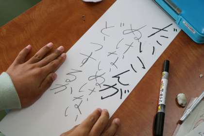 1年生日本語の様子です。初めて俳句を作ることに挑戦です。冬の季節から考えられる言葉をたくさん考えて初めての俳句作りに挑戦しました。