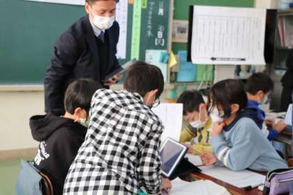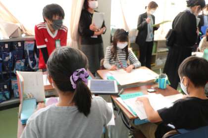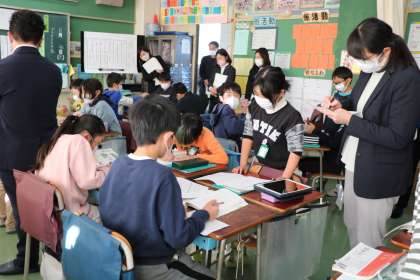 自分の考えを聞いてもらったり、友達の考えに対する自分の考えをさらに伝えたり、活発に班で交流しています。安心して自分の考えが言える学級の雰囲気がとてもいいです。
