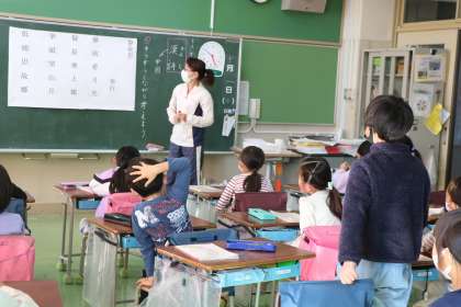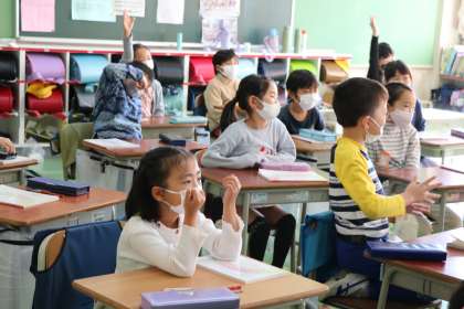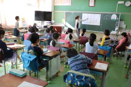 2年生日本語の学習の様子です。今日は漢詩「静夜思」を学習しています。知っている漢字から大体の詩のイメージを考えていきます。みんなで考えると色々な切り口があって面白いです。