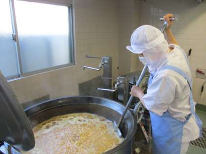 写真は親子どんを作っているところです。
