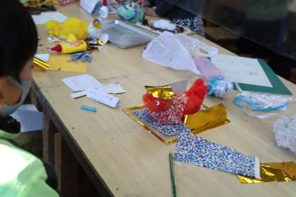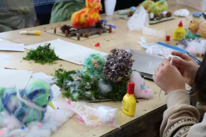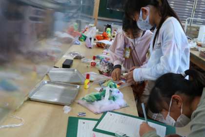 3年生図工「あったか小鳥」の様子です。今日は小鳥の環境を整え、できた子から友達の作品鑑賞です。