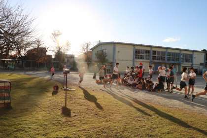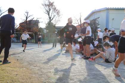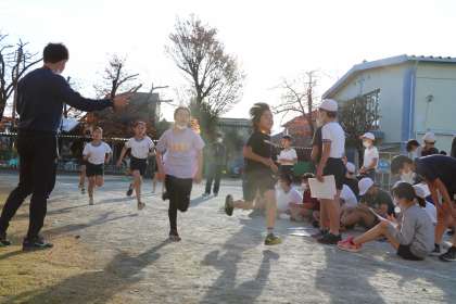 「あと、1周!」と先生から声がかかるとさらに自分の力を出し切ってがんばる子どもたちです。
