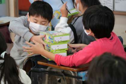3年生の理科の授業の様子です。「風のはたらき」の学習で使用する実験キットを配ってもらいました。みんな大切な自分の実験キットに丁寧に名前を書き込んでいました。楽しい実験になるといいですね。