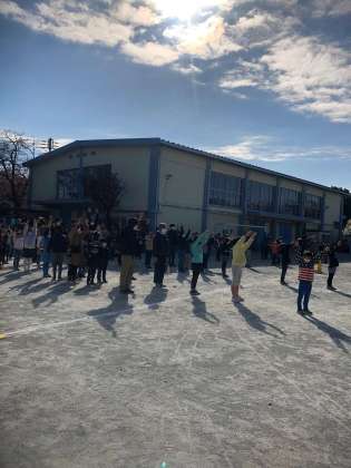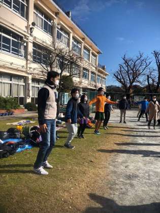 開会式の後、準備運動を十分してから始めます。先生たちも参加してくれました。