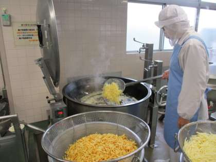 早香はみかんとぽんかんをかけ合わせたみかんの品種です。あまくて香りがよく、とてもおいしいみかんでした。写真はじゃがいものハニーサラダのじゃがいもをあげているところです。