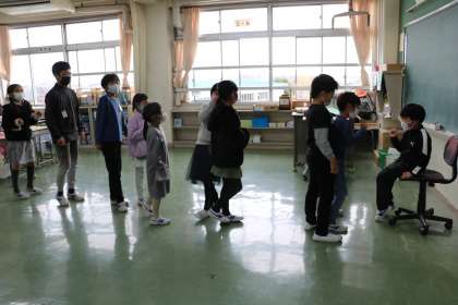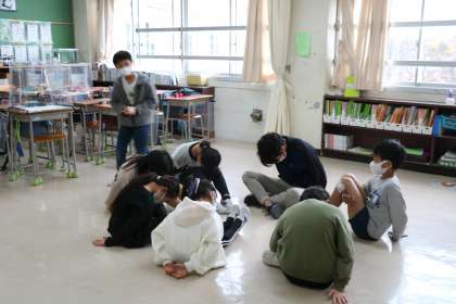…をしている様子です。あれ?ずいぶん大きい6年生と思ったら、担当の先生でした。