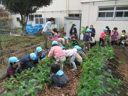 幼稚園 年長組 大根の収穫